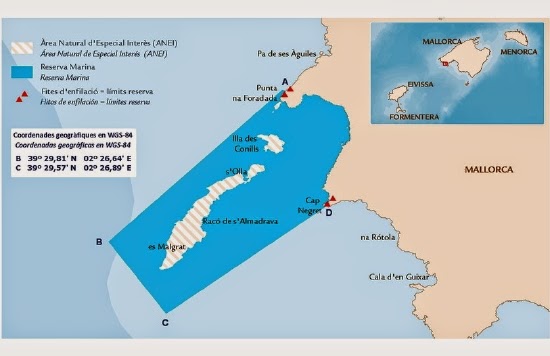 Con estos objetivos generales, la Consejería de Agricultura y Pesca del Gobierno de las Islas Baleares impulsó la creación, en 1999, de tres reservas marinas, de estilo que se adelantó a las responsabilidades que le corresponden en valía del Protocolo sobre las comarcas especialmente protegidas y la diversidad orgánica en el Mediterráneo (Boe núm. 302, de 18 de diciembre de 1999).