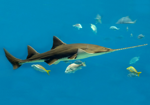 El pez sierra es muy grande – alcanza hasta los 7 metros. Estos tienen hocicos distintivos, dentados, de la cual reciben su nombre. Las cinco especies son clasificadas como en peligro o críticamente en peligro de extinción en la lista roja de especies amenazadas de la UICN. Viven en aguas costeras tropicales y subtropicales de todo el mundo, incluyendo los estuarios y sistemas fluviales, así como los océanos.